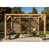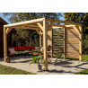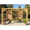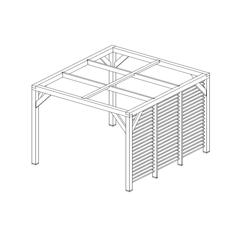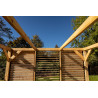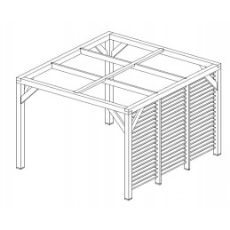 Materiale: Picea termo-trattata a 215°CDimensioni a terra: 341x626 cmSuperficie coperta: 21,34 m²Altezza al colmo: 2,17 mAltezza passaggio: 2,05 mLarghezza passaggio: 2,89 mStruttura: 4 pali in picea 12x12 cm (2 rinforzati 12x4 cm)Copertura: Frangivista con stecche orientabiliBulloneria: Viti da 7 cm, acciaio inoxFissaggio: Piastre metalliche...