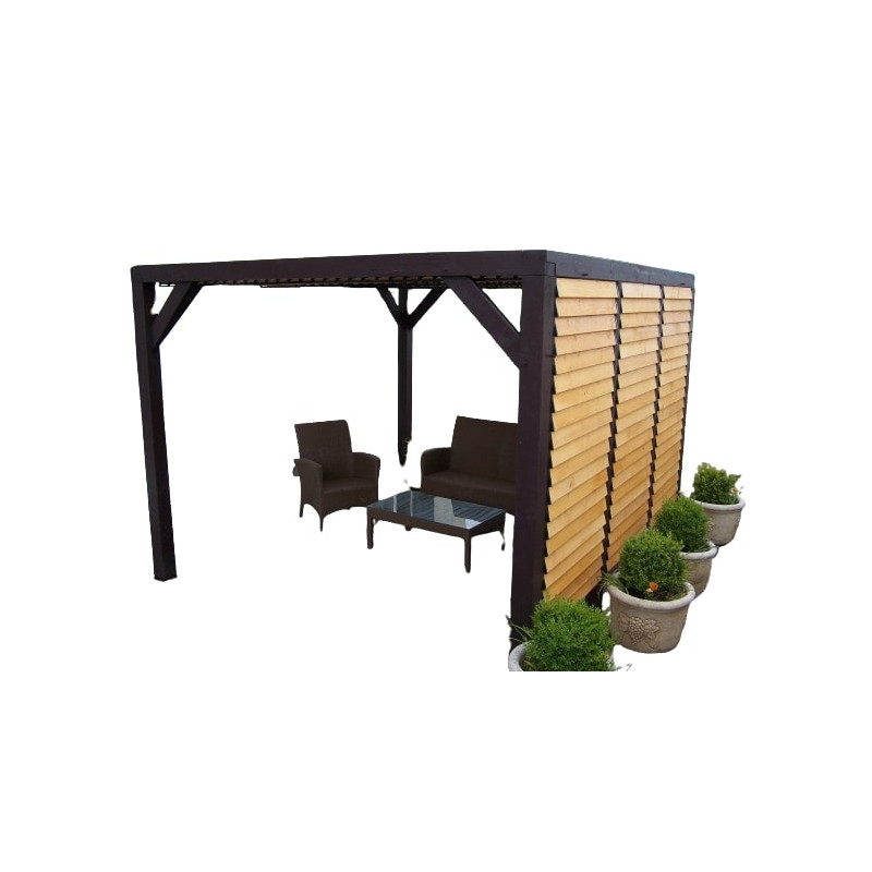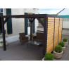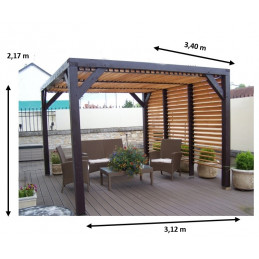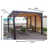 Materiale: Picea termo-trattata a 215°CDimensioni a terra: 341x626 cmSuperficie coperta: 21,34 m²Altezza al colmo: 2,17 mAltezza passaggio: 2,05 mLarghezza passaggio: 2,89 mStruttura: 4 pali in picea 12x12 cm (2 rinforzati 12x4 cm)Copertura: Frangivista con stecche orientabiliBulloneria: Viti da 7 cm, acciaio inoxFissaggio: Piastre metalliche...