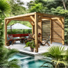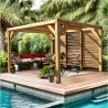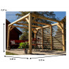 Materiale: Picea termo-trattata a 215°CDimensioni a terra: 341x626 cmSuperficie coperta: 21,34 m²Altezza al colmo: 2,17 mAltezza passaggio: 2,05 mLarghezza passaggio: 2,89 mStruttura: 4 pali in picea 12x12 cm (2 rinforzati 12x4 cm)Copertura: Frangivista con stecche orientabiliBulloneria: Viti da 7 cm, acciaio inoxFissaggio: Piastre metalliche...