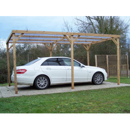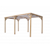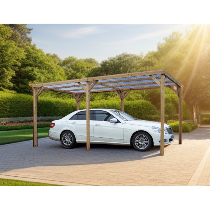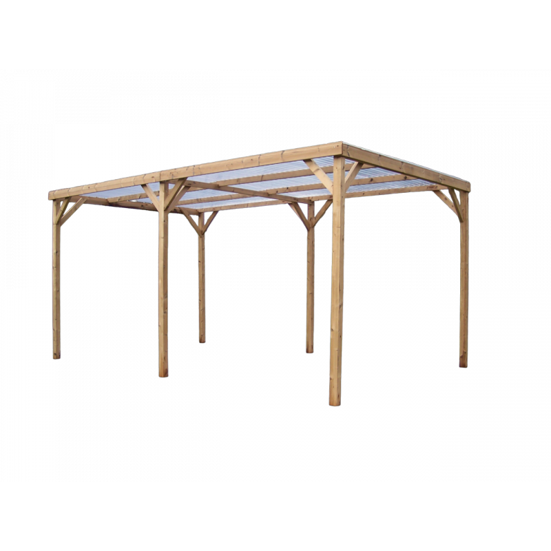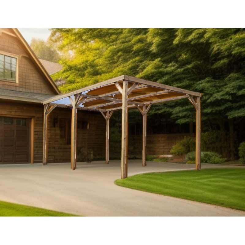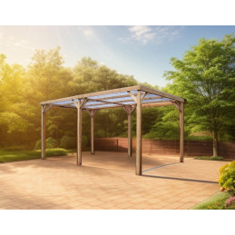 Materiale: Picea termo-trattata a 215°CDimensioni a terra: 341x626 cmSuperficie coperta: 21,34 m²Altezza al colmo: 2,17 mAltezza passaggio: 2,05 mLarghezza passaggio: 2,89 mStruttura: 4 pali in picea 12x12 cm (2 rinforzati 12x4 cm)Copertura: Frangivista con stecche orientabiliBulloneria: Viti da 7 cm, acciaio inoxFissaggio: Piastre metalliche...