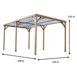 Materiale: Legno lamellare di abete rosso non trattatoDimensioni a terra: 339 x 360 cmSuperficie coperta: 12,2 m²Altezza passaggio: 2,05 mAltezza colmo: 2,17 mDoghe regolabili: su tetto e parete lateraleColore: Legno naturaleCertificazioni: PEFC – legno da foreste sostenibiliOrigine: Prodotto fabbricato in FranciaPeso: 410 kgImballo: Pallet 370 x 120 x 45 cm