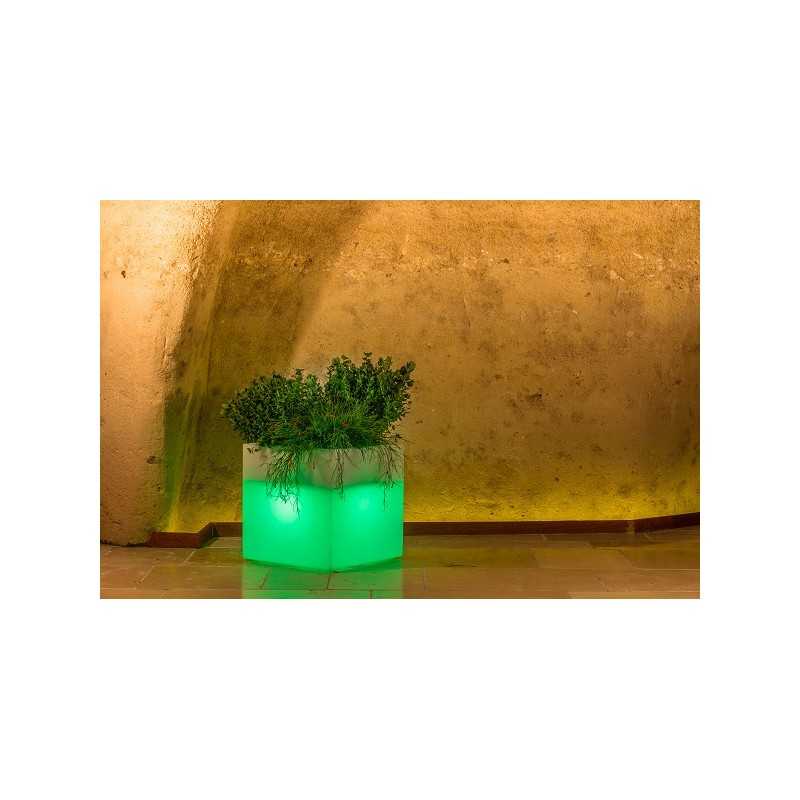 Vaso luminoso moderno di design 40x40 H40 in polimero resistente con LED verde per interno ed esterno - Made in Italy - Monacis