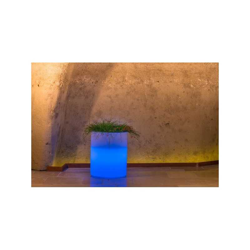 Vaso luminoso moderno di design Ø40 H50 in polimero resistente con LED blu per interno ed esterno - Made in Italy - Monacis