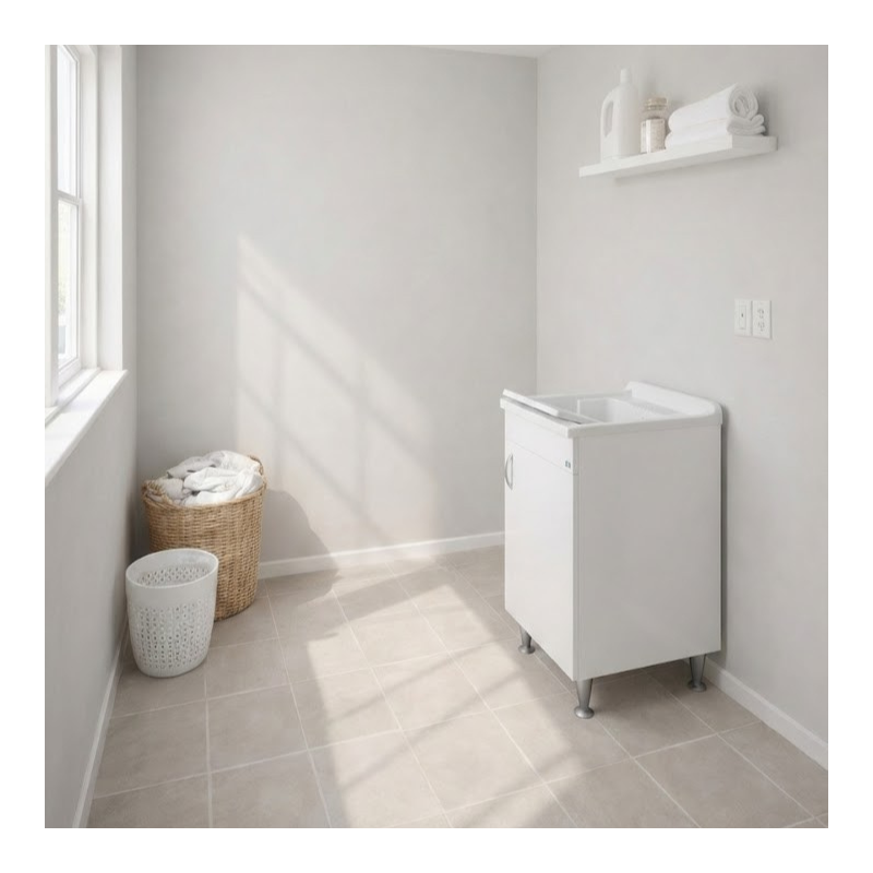 Materiale mobile: Nobilitato idrofugo W100, spessore 18 mmMateriale vasca e asse: Polipropilene resistente agli acidiDimensioni: Larghezza 60 cm, profondità 50 cm, altezza 85 cmColore: BiancoManiglie: CromatePiedini: Regolabili in altezzaRubinetto: Non incluso, vasca predispostaSifone: Autopulente con piletta e troppopienoInstallazione: Da interno