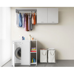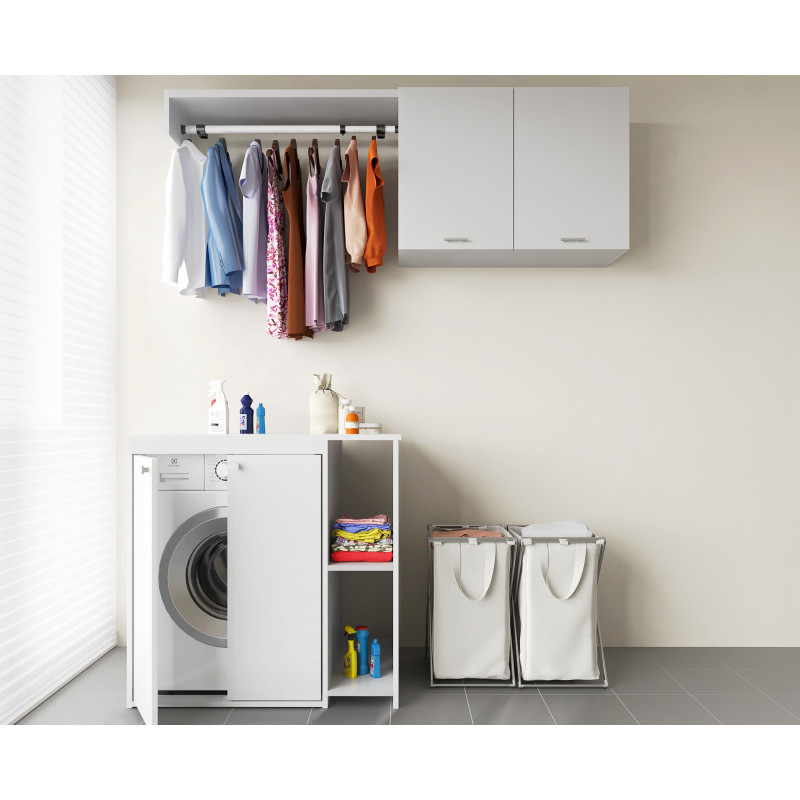 Materiale mobile: Nobilitato idrofugo W100, spessore 18 mmMateriale vasca e asse: Polipropilene resistente agli acidiDimensioni complessive: Larghezza 109 cm, profondità 60 cm, altezza 89 cmColore: BiancoPosizione vasca: DestraSpazio per lavatrice: 61 cm (larghezza), 59 cm (profondità), 85 cm (altezza)Rubinetto: Non incluso, vasca predispostaSifone:...