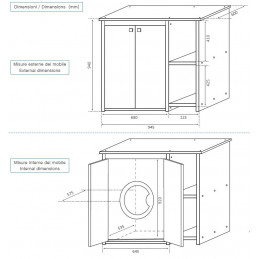 Materiale mobile: Nobilitato idrofugo W100, spessore 18 mmMateriale vasca e asse: Polipropilene resistente agli acidiDimensioni complessive: Larghezza 109 cm, profondità 60 cm, altezza 89 cmColore: BiancoPosizione vasca: SinistraSpazio per lavatrice: 61 cm (larghezza), 59 cm (profondità), 85 cm (altezza)Rubinetto: Non incluso, vasca predispostaSifone:...
