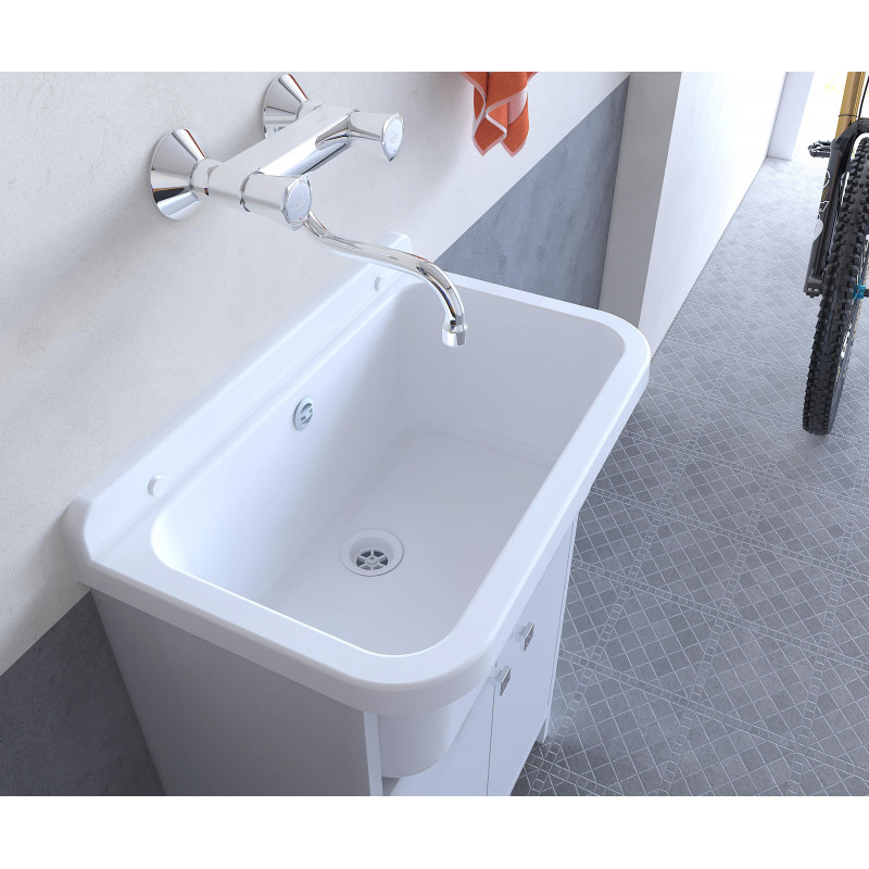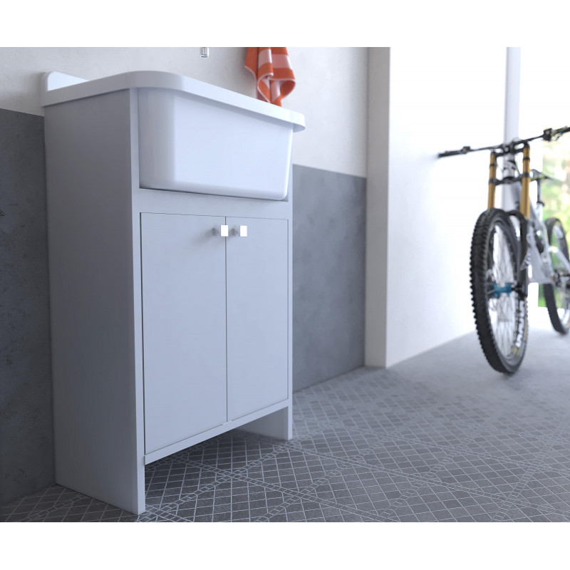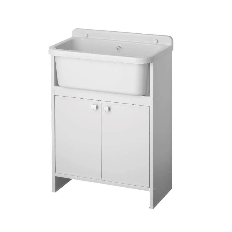 Lavatoio con mobile, bianco da esterno e interno 55x34 cm – compatto in PVC e polipropilene – kit montaggio – Negrari