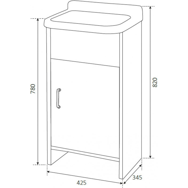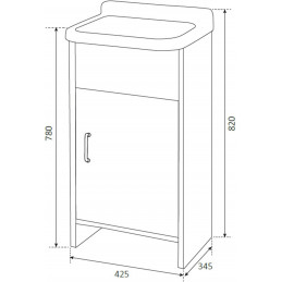 Materiale mobile: Nobilitato idrofugo W100, spessore 18 mmMateriale vasca e asse: Polipropilene resistente agli acidiDimensioni: Larghezza 60 cm, profondità 50 cm, altezza 85 cmColore: BiancoManiglie: CromatePiedini: Regolabili in altezzaRubinetto: Non incluso, vasca predispostaSifone: Autopulente con piletta e troppopienoInstallazione: Da interno