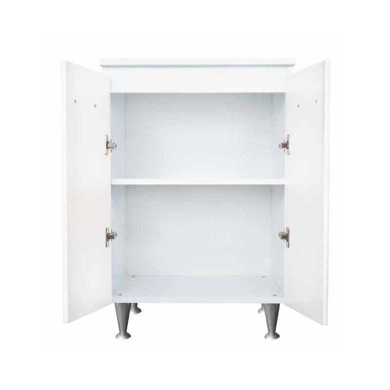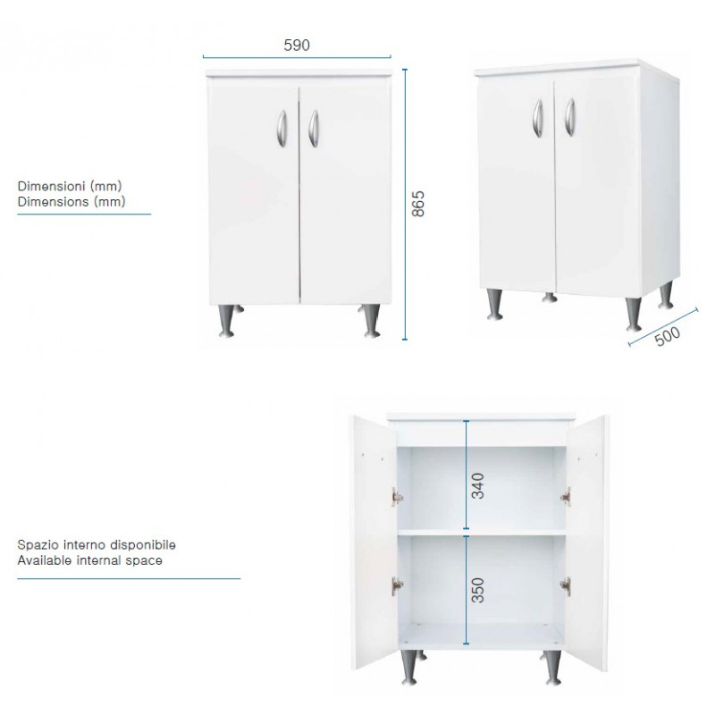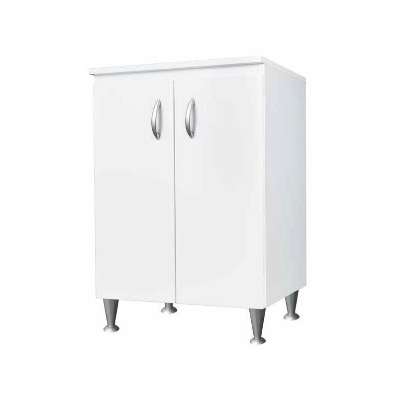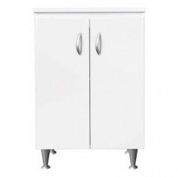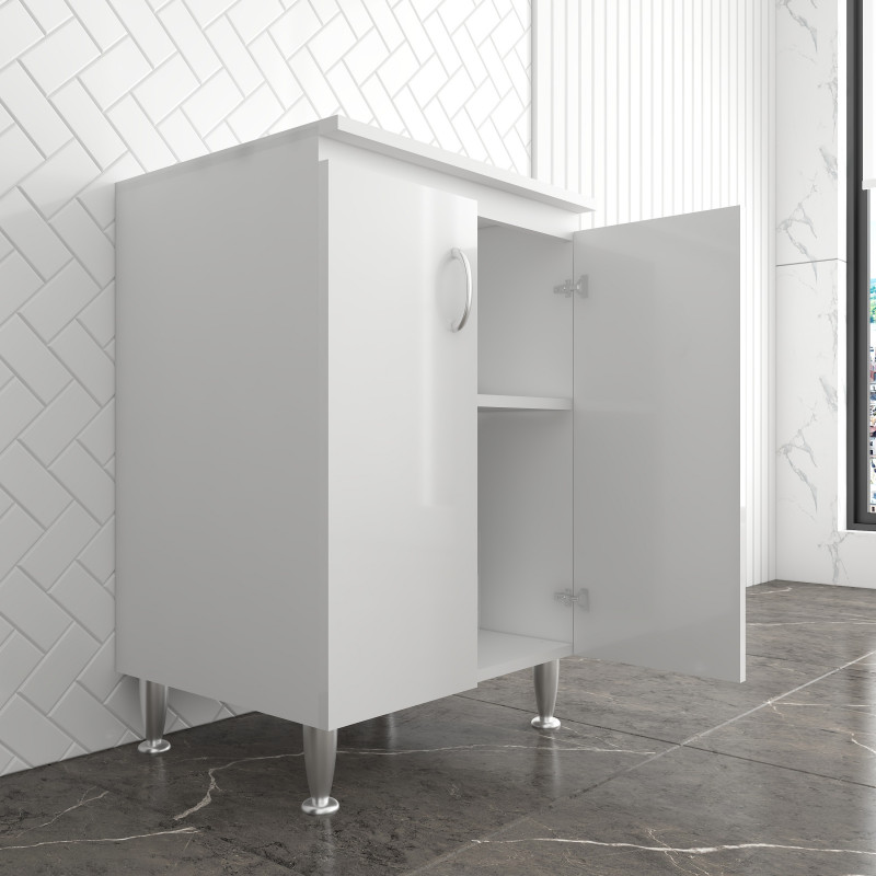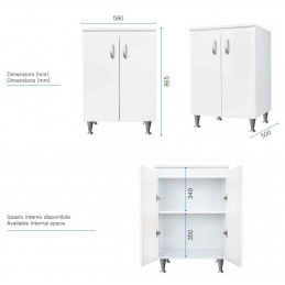 Materiale mobile: Nobilitato idrofugo W100, spessore 18 mmMateriale vasca e asse: Polipropilene resistente agli acidiDimensioni: Larghezza 60 cm, profondità 50 cm, altezza 85 cmColore: BiancoManiglie: CromatePiedini: Regolabili in altezzaRubinetto: Non incluso, vasca predispostaSifone: Autopulente con piletta e troppopienoInstallazione: Da interno