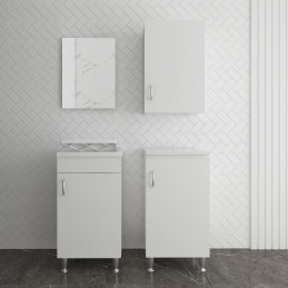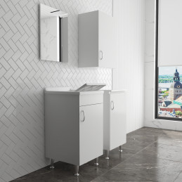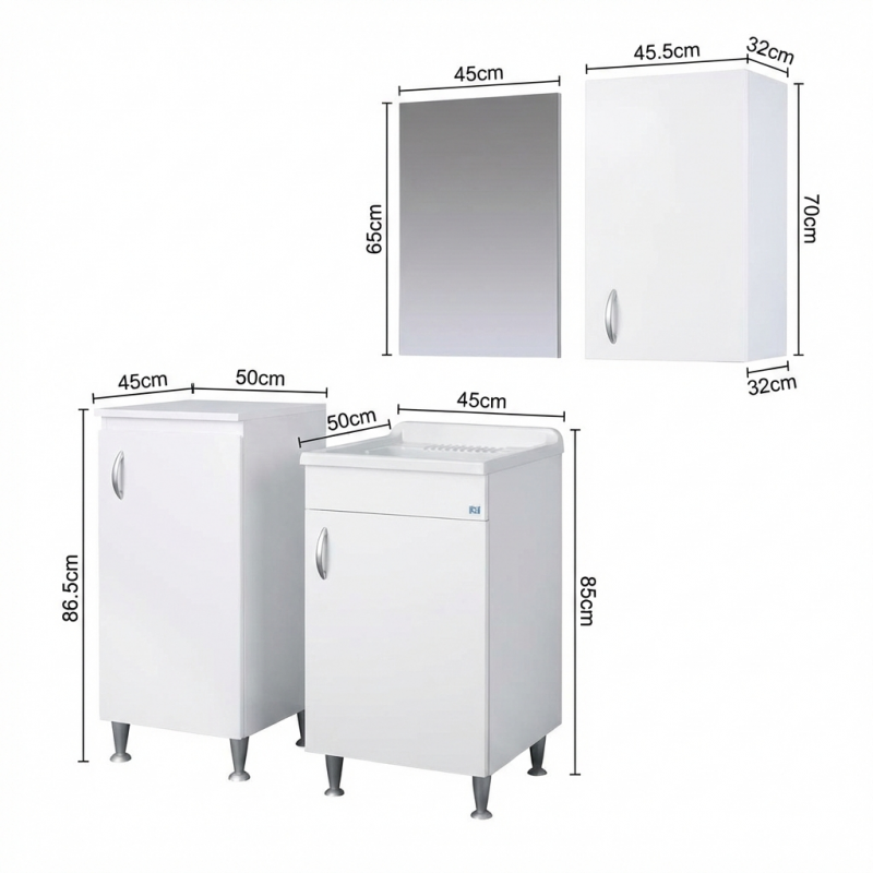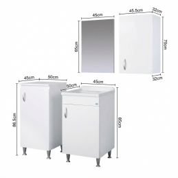 Materiale mobile: Nobilitato idrofugo, spessore 16 mmMateriale vasca: Polipropilene 50x50 cmMateriale asse: Plastica resistente agli acidiDimensioni: Larghezza 50 cm, profondità 50 cm, altezza 85 cmColore: BiancoManiglie: Cromate in metalloPiedini: Altezza 0,5 cmRubinetto: Non incluso, vasca predispostaSifone: Autopulente con piletta e...