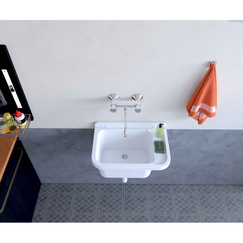 Ha una capacità di 13,5 litri e include una pratica dotazione di montaggio: staffe, viti, piletta con troppopieno, sifone e coprivite.