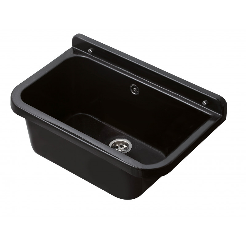 Pilozzo a muro da esterno 55x34 cm con troppopieno – Nero – Giardino e garage – Kit di montaggio e scarico – Negrari