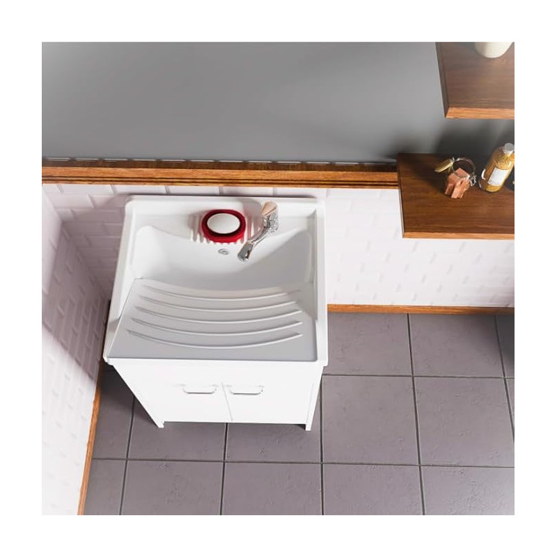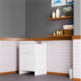 Materiale mobile: Nobilitato idrofugo, spessore 16 mmMateriale vasca: Polipropilene 50x50 cmMateriale asse: Plastica resistente agli acidiDimensioni: Larghezza 50 cm, profondità 50 cm, altezza 85 cmColore: BiancoManiglie: Cromate in metalloPiedini: Altezza 0,5 cmRubinetto: Non incluso, vasca predispostaSifone: Autopulente con piletta e...