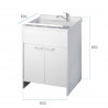 Materiale mobile: Nobilitato idrofugo W100, spessore 18 mmMateriale vasca e asse: Polipropilene resistente agli acidiDimensioni: Larghezza 60 cm, profondità 50 cm, altezza 85 cmColore: BiancoManiglie: CromatePiedini: Regolabili in altezzaRubinetto: Non incluso, vasca predispostaSifone: Autopulente con piletta e troppopienoInstallazione: Da interno