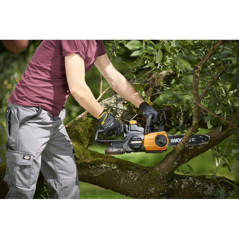 Modello: WG322E.9Alimentazione: Batteria ricaricabile 20 Volt (non inclusa)Compatibilità: Sistema Worx PowerShare 20 Volt (escluso robot rasaerba)Lunghezza barra: 25 centimetri (Oregon)Passo catena: 9 millimetriVelocità di taglio: 3,8 metri al secondoSistema tensionamento: Regolazione barra e catena con una sola mano, senza utensiliSostituzione catena:...
