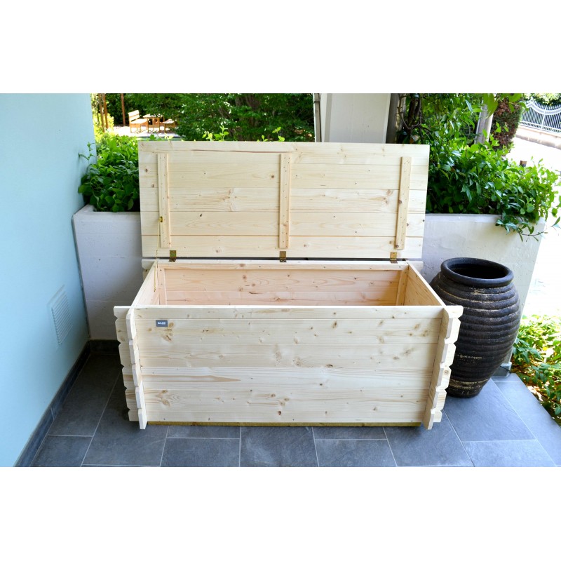 Codice articolo: 62418Modello: GiunoneMateriale: Legno di abete naturaleTrattamento: NessunoCostruzione: Ad incastroColore: Non colorataSpessore pareti: 16 mmTipo di apertura: A battenteDimensioni esterne: 98x60x54 cmDimensioni interne: 83x45x49 cmVolume interno: 0,18 m³ – 183 litriFondo: Completo – legno perlinato 16 mmCoperchio: Legno perlinato 16...