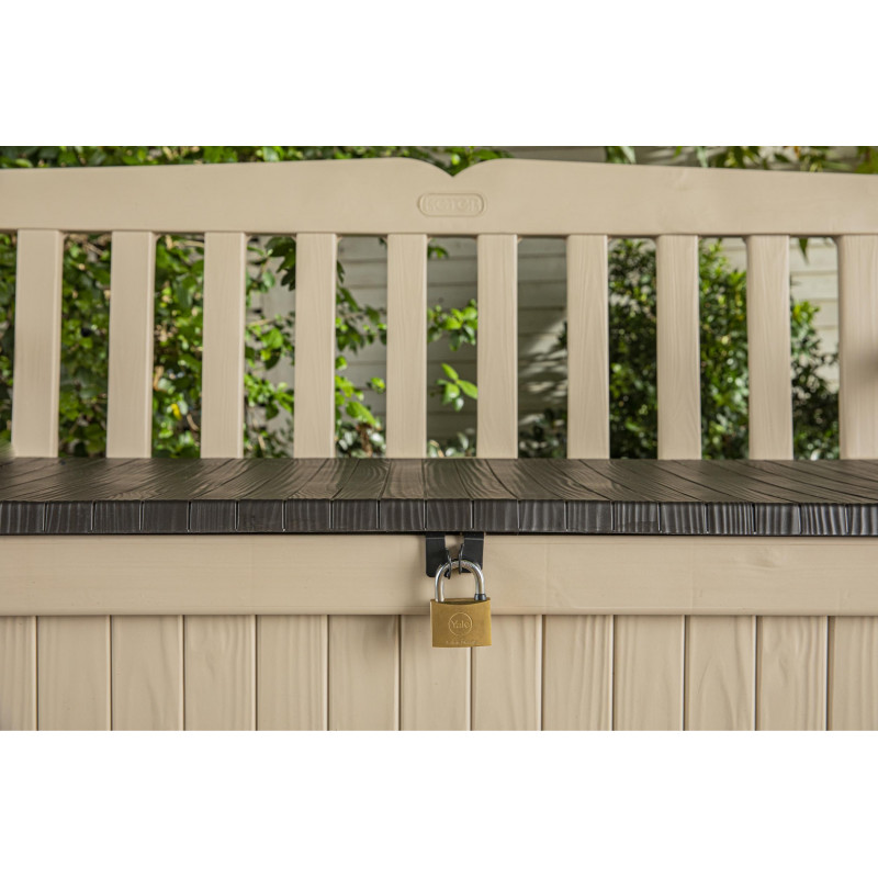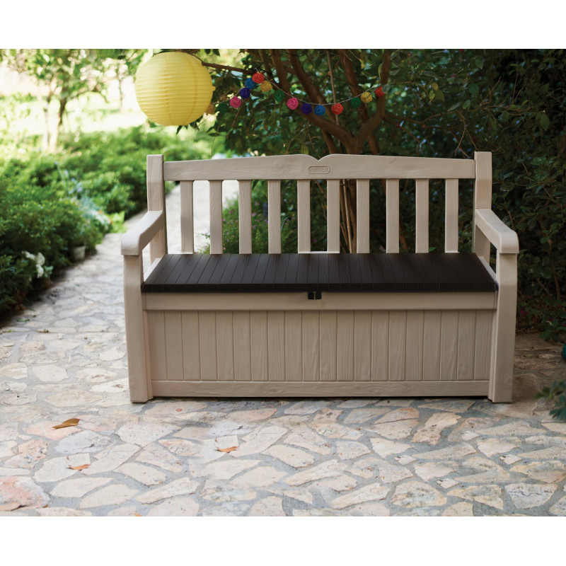 Marca: KeterCapacità: 265 LColore: MarroneLarghezza prodotto: 140 cmProfondità prodotto: 60 cmAltezza prodotto: 84 cmLarghezza imballo: 132,5 cmProfondità imballo: 75 cmAltezza imballo: 18,5 cmPeso imballo: 16,1 kgPortata seduta: 270 kgChiusura: Sistema lucchettabileVano interno: Asciutto e ventilatoResistenza: Raggi UV e intemperie