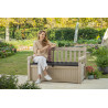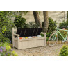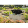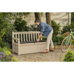 Marca: KeterCapacità: 227 LColore: GrafiteLarghezza prodotto: 132,7 cmProfondità prodotto: 61,2 cmAltezza prodotto: 89 cmLarghezza imballo: 131 cmProfondità imballo: 75 cmAltezza imballo: 18,5 cmPeso imballo: 18,05 kgPortata seduta: 270 kgChiusura: Sistema lucchettabileResistenza: Raggi UV e intemperie