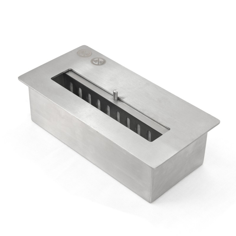 Il singolo bruciatore in acciaio inox 430SS certificato in Germania TUV assicura una fiamma sicura e persistente. Il suo spessore di 3mm e la sua singolarità sono le caratteristiche in più che rendono unico, sicuro ed efficiente il biocamino Cambridge.