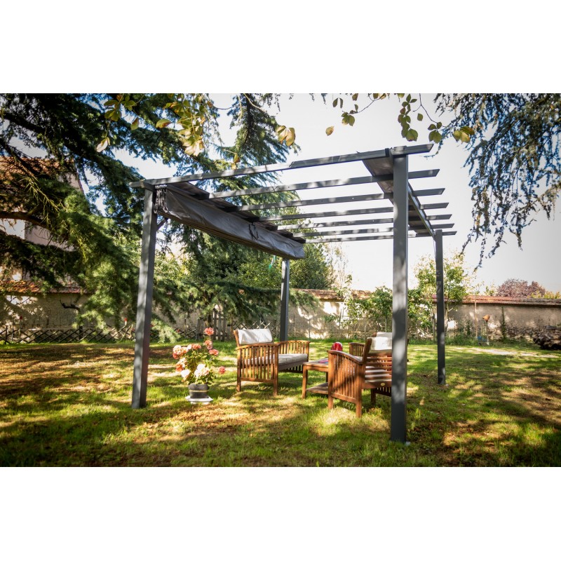 Tipologia: Tettoia addossataStruttura: Alluminio verniciato grigio antraciteCopertura: Policarbonato alveolare traslucidoSpessore pannelli: 6 mmColore tetto: Traslucido chiaroColore struttura: AntraciteSuperficie coperta: 15,38 m²Dimensioni esterne: 501 × 307 cmAltezza anteriore: 210 cmAltezza posteriore: 299 cmPiedi: 3 con platine di fissaggioAccessori...