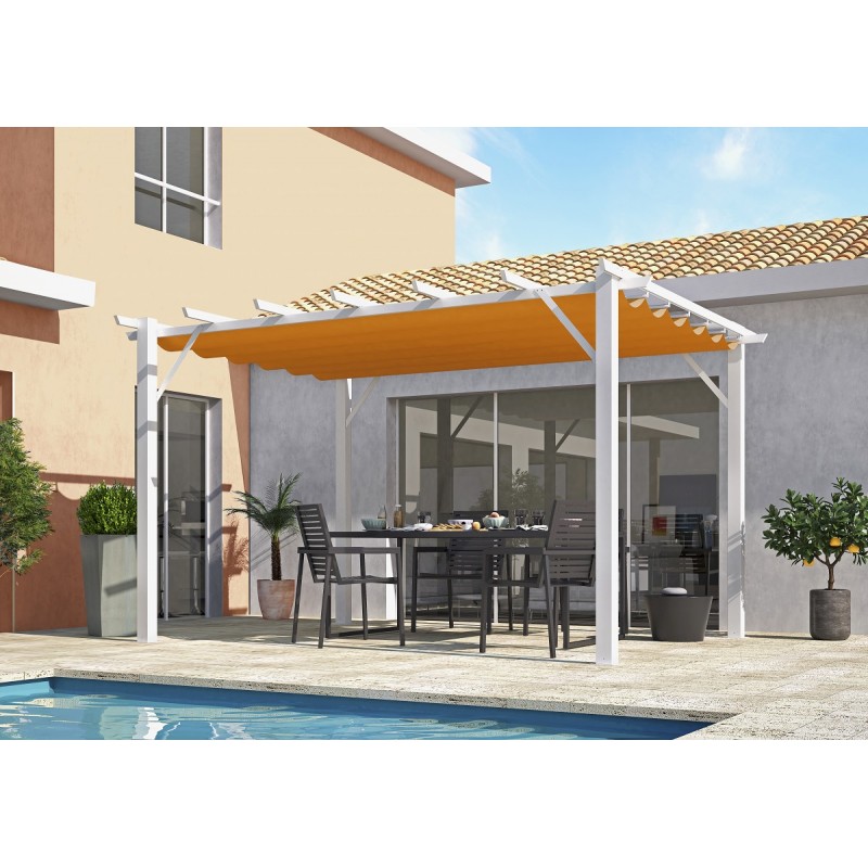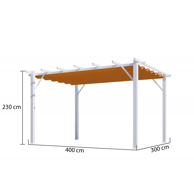 Pergola da giardino in alluminio 400x300 cm con telo scorrevole ruggine – tettoia autoportante elegante bianca – PER4030WR Foresta