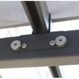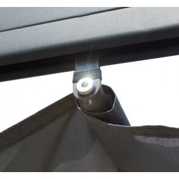 Copertura regolabile in poliestere 140 gr/m², che consente di modulare facilmente luce e ombra.