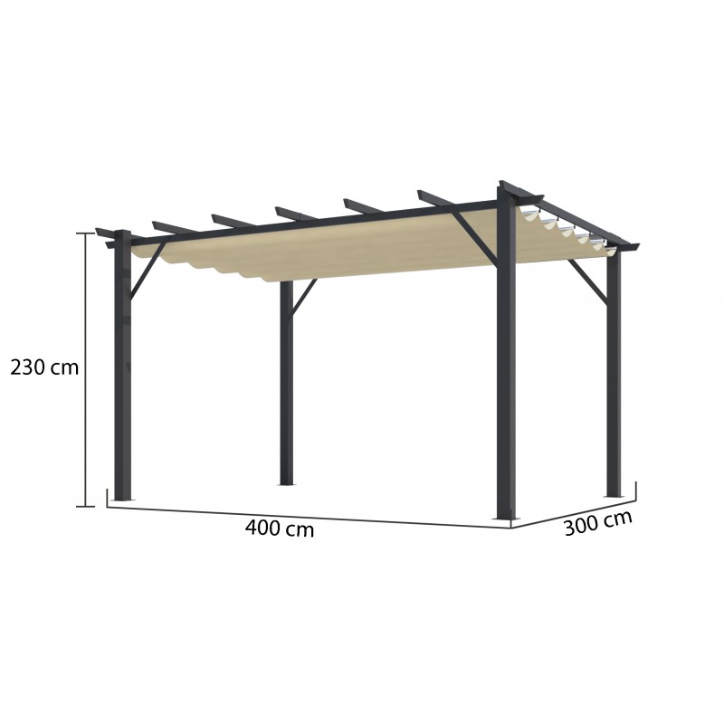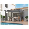 Tipologia: Tettoia addossataStruttura: Alluminio verniciato grigio antraciteCopertura: Policarbonato anti-UVSpessore pannelli: 6 mmColore tetto: Traslucido chiaroColore struttura: Grigio antraciteSuperficie coperta: 12,83 m²Dimensioni esterne: 418 × 307 cmAltezza anteriore: 210 cmAltezza posteriore: 299 cmPiedi: 3 con platine di fissaggioAccessori...
