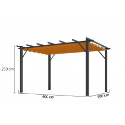 Tipologia: Tettoia addossataStruttura: Alluminio verniciato grigio antraciteCopertura: Policarbonato anti-UVSpessore pannelli: 6 mmColore tetto: Traslucido chiaroColore struttura: Grigio antraciteSuperficie coperta: 12,83 m²Dimensioni esterne: 418 × 307 cmAltezza anteriore: 210 cmAltezza posteriore: 299 cmPiedi: 3 con platine di fissaggioAccessori...