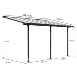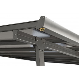 Ideale per accogliere un tavolo da 14-16 persone, questa tettoia offre una copertura di 15,38 m² con 3 pali anteriori dotati di platine di fissaggio e gouttière per lo scarico dell’acqua.