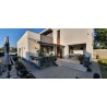 La tettoia TT 3050 AL Foresta è una soluzione elegante e resistente per proteggere terrazze e spazi esterni da pioggia, sole e neve.