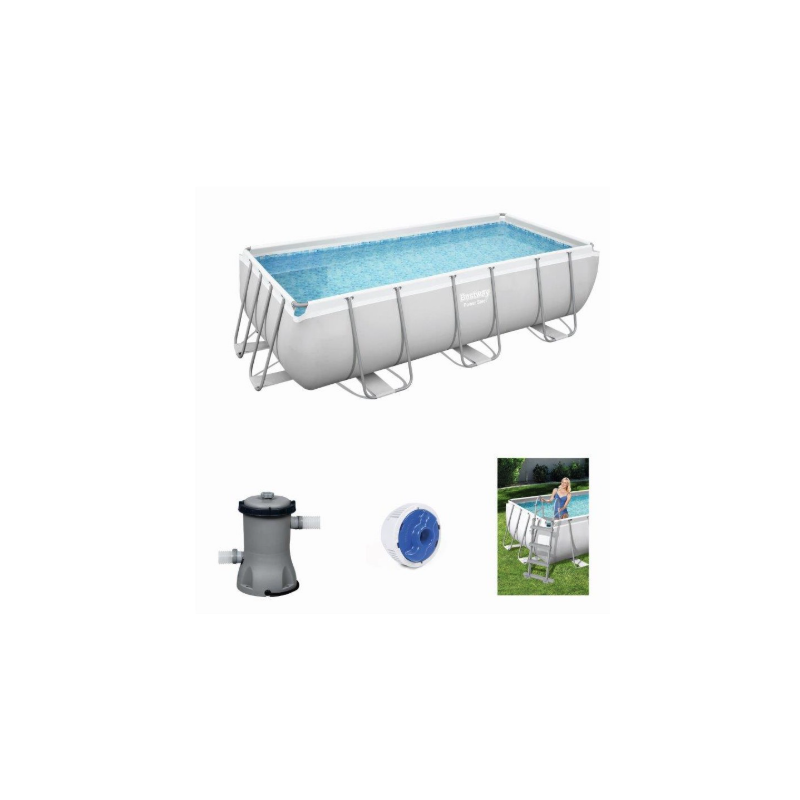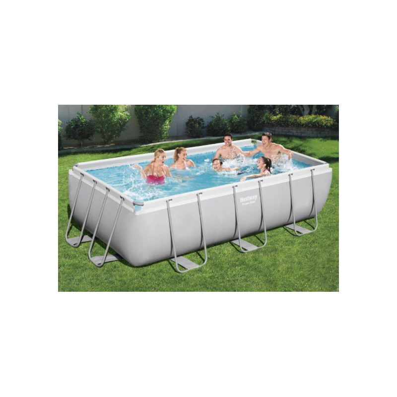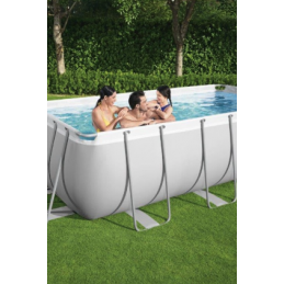 Piscina fuori terra rettangolare Bestway Power Steel progettata per offrire stabilità strutturale e semplicità di montaggio senza utilizzo di attrezzi.