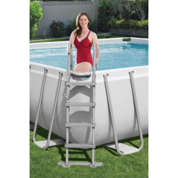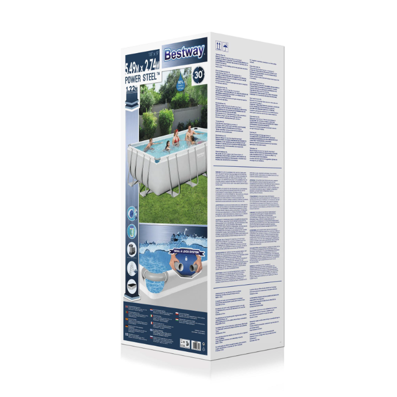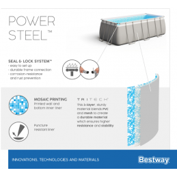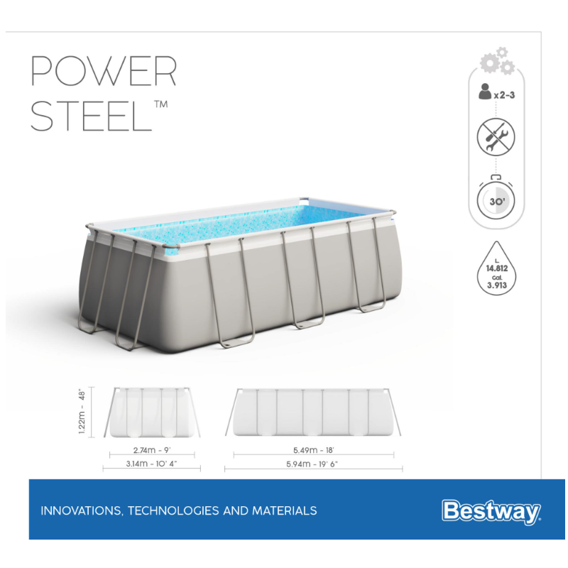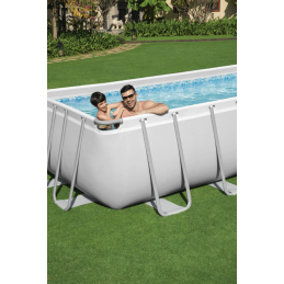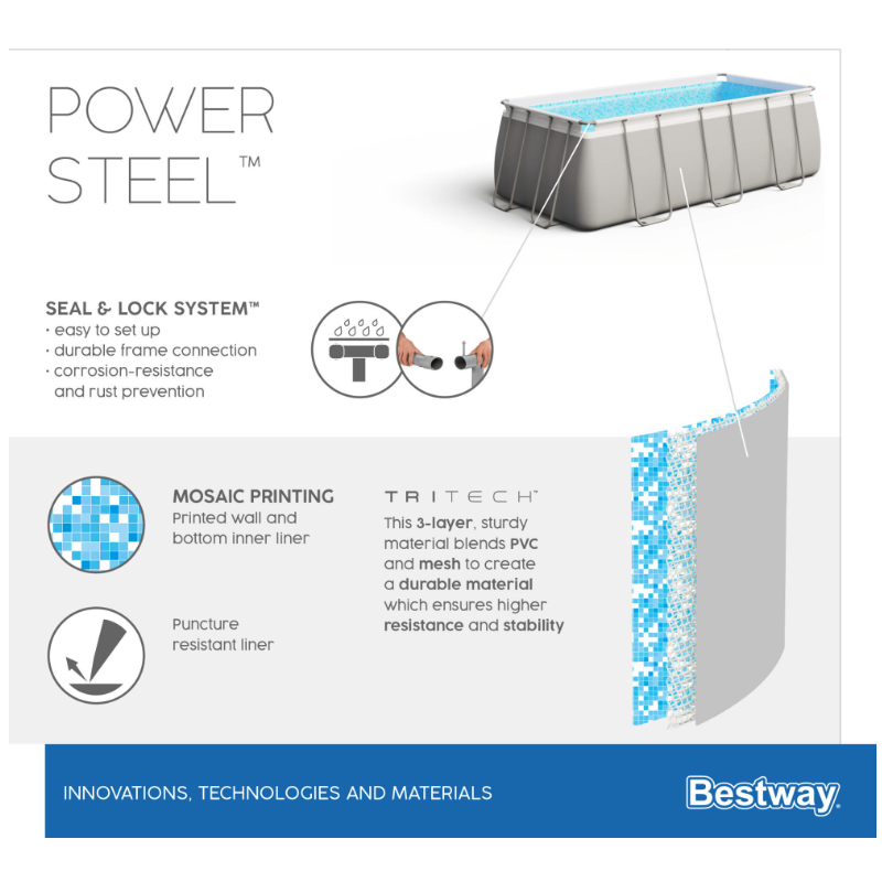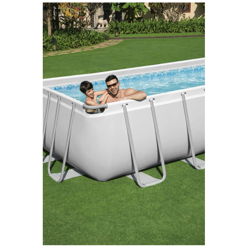 La piscina fuori terra rettangolare Bestway Power Steel 56465 è progettata per offrire grande capacità e resistenza strutturale, ideale per famiglie e utilizzo stagionale in giardino.
