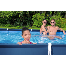 Tipologia: piscina fuori terra rettangolareModello: Bestway Power Steel 56465Struttura: telaio in acciaio anticorrosione Seal & LockMateriale liner: PVC Tritech multistratoDimensioni: 549 x 274 x 122 cmCapacità acqua (90%): 14.812 LPompa filtro: 5.678 L/h inclusaCartuccia filtrante: tipo 58094 inclusaScaletta di sicurezza: inclusaTelo di copertura:...