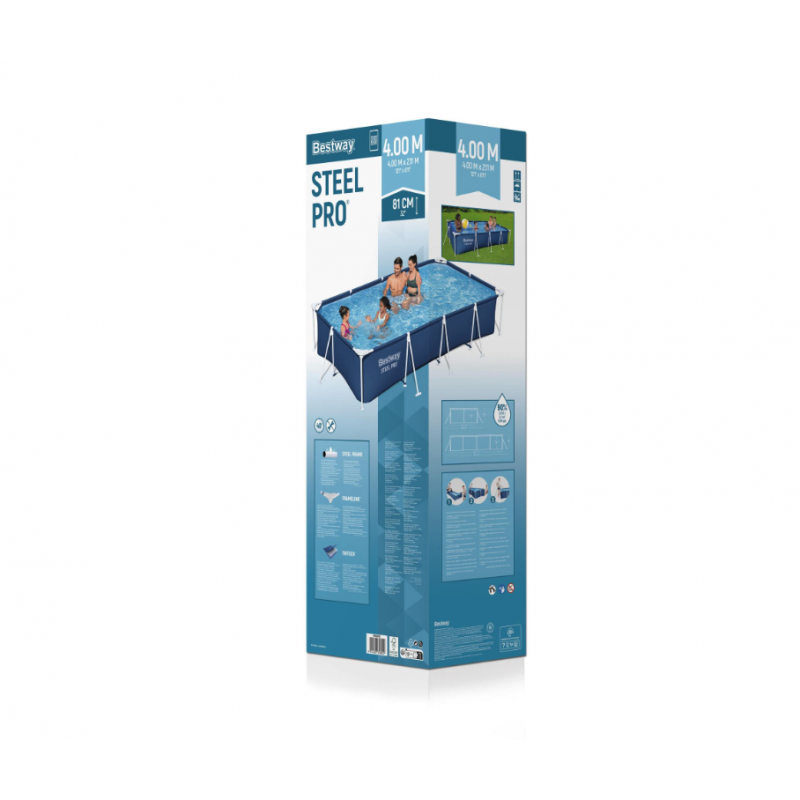 Tipologia: piscina fuori terra rettangolareModello: Bestway Power Steel 56441Dimensioni: 404 x 201 x 100 cmCapacità acqua (90%): 6.478 LStruttura: telaio in acciaio anticorrosioneMateriale liner: PVC Tritech multistratoRivestimento interno: stampa effetto mosaicoPompa filtro: 2.006 L/h inclusaCartuccia filtrante: tipo 58093 inclusaScaletta:...