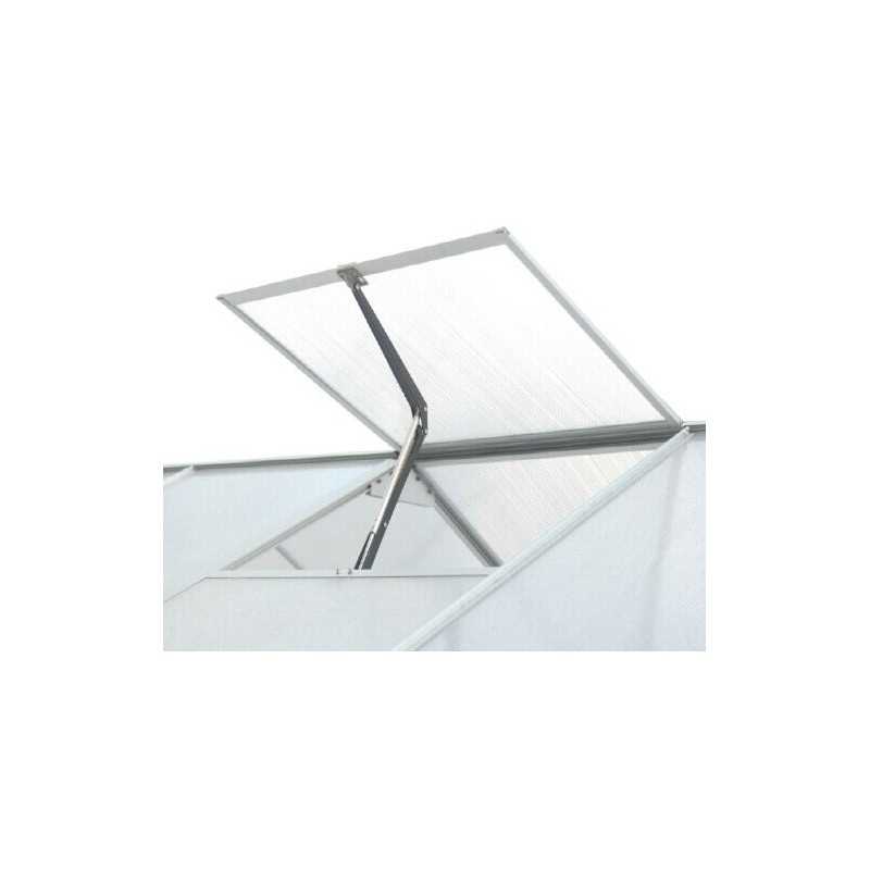 Struttura: alluminio anodizzato anti-corrosioneCopertura: pannelli in policarbonato alveolare spessore 4 mmDimensioni esterne: L 188 x P 127 x H 195 cmSuperficie utile: 2,39 m²Altezza pareti: 127 cmAltezza colmo: 195 cmPorta: singola scorrevole, 60 x 160 cmFinestra: 1 finestra di tetto manualeMontaggio: pannelli a clips, struttura semplice da...