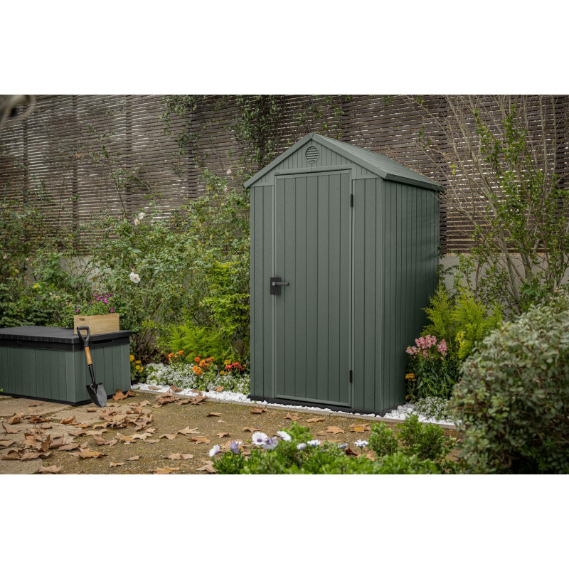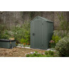 Casetta in Duotech Verniciabile, 2 Porte, Pavimento Incluso, Lucernario e 2 Finestre Frontali in Policarbonato - Dimensioni Esterne Cm. 350X229X254H - Grigio Effetto Legno Naturale