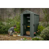 Casetta Addossabile in Duotech Verniciabile, 2 Porte, Pavimento Incluso, Finestre in Policarbonato - Dimensioni Esterne Cm. 214X218X226H - Grigio Effetto Legno Naturale