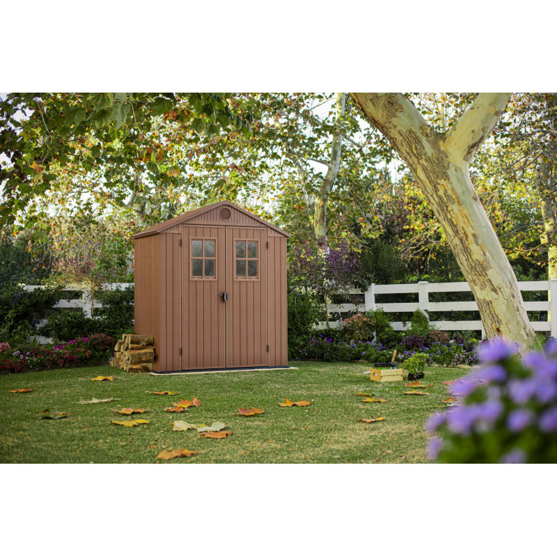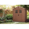 Casetta da giardino in resina EVOTECH+ effetto legno 190x122x221 cm - con pavimento rialzato e doppia porta - Marrone – Keter