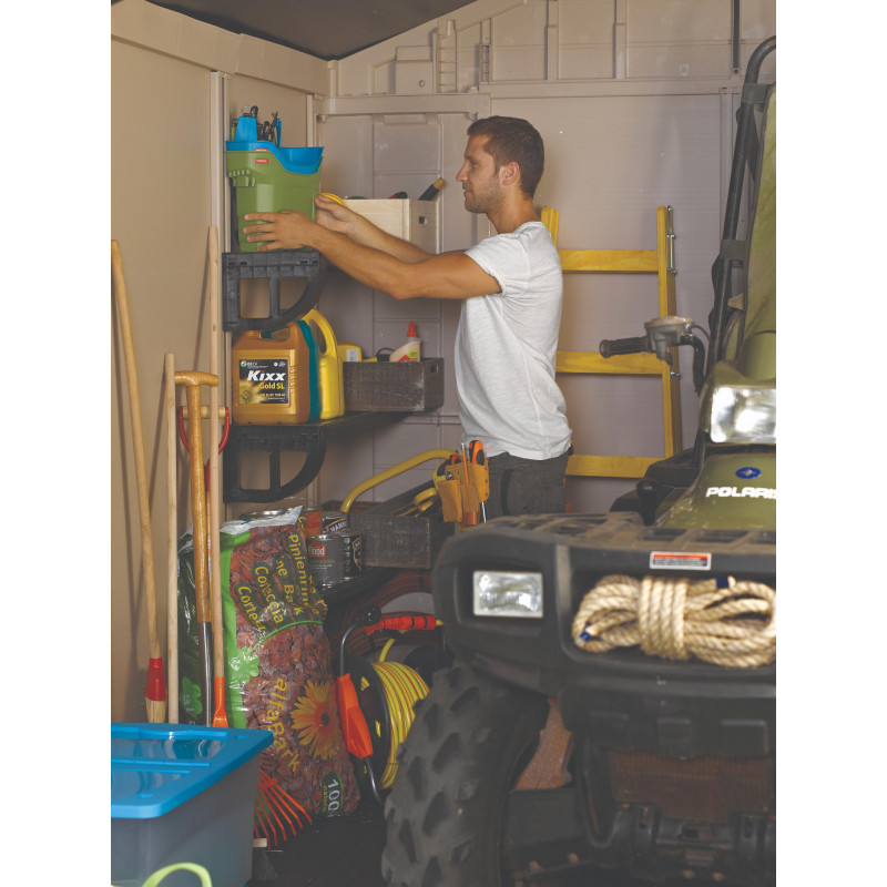 Casetta Addossabile in Duotech Verniciabile, 2 Porte, Pavimento Incluso, Finestre in Policarbonato - Dimensioni Esterne Cm. 277X218X226H - Grigio Effetto Legno Naturale
