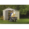 Casetta Addossabile in Duotech Verniciabile, 2 Porte, Pavimento Incluso, Finestre in Policarbonato - Dimensioni Esterne Cm. 277X218X226H - Grigio Effetto Legno Naturale
