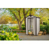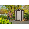 Casetta Addossabile in Duotech Verniciabile, 2 Porte, Pavimento Incluso, Finestre in Policarbonato - Dimensioni Esterne Cm. 214X218X226H - Grigio Effetto Legno Naturale
