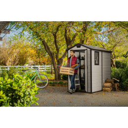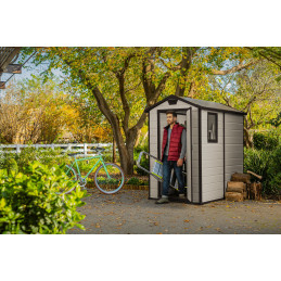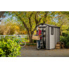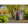 Pensata per offrire un ricovero ordinato anche negli spazi esterni più ristretti, questa casetta porta attrezzi da giardino in resina unisce compattezza e buona profondità, risultando ideale per conservare attrezzi, accessori e forniture da esterno in modo protetto.