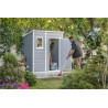Casetta da giardino in resina effetto legno 183,5x111 cm - con pavimento e finestra, porta lucchettabile - Grigio – Keter