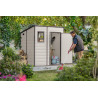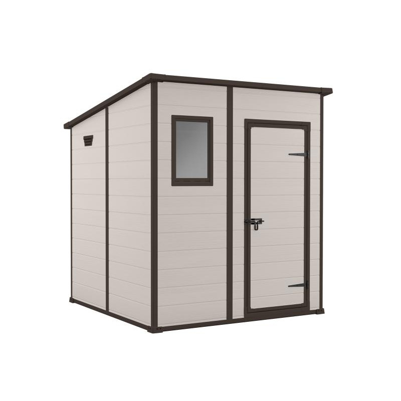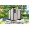 Casetta da giardino in resina effetto legno 183,5x185 cm - pavimento e finestra, porta lucchettabile - Beige – Keter