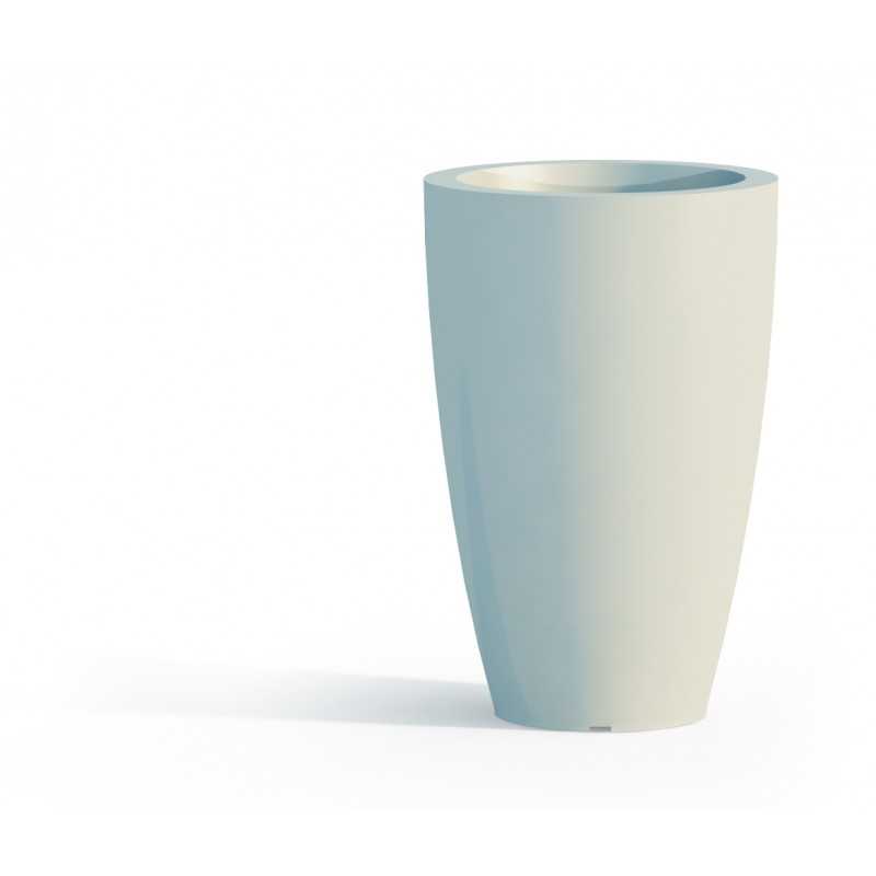 Il vaso è realizzato in polietilene tramite stampaggio rotazionale, una tecnologia produttiva che consente di ottenere un corpo cavo senza saldature e senza tensioni interne.