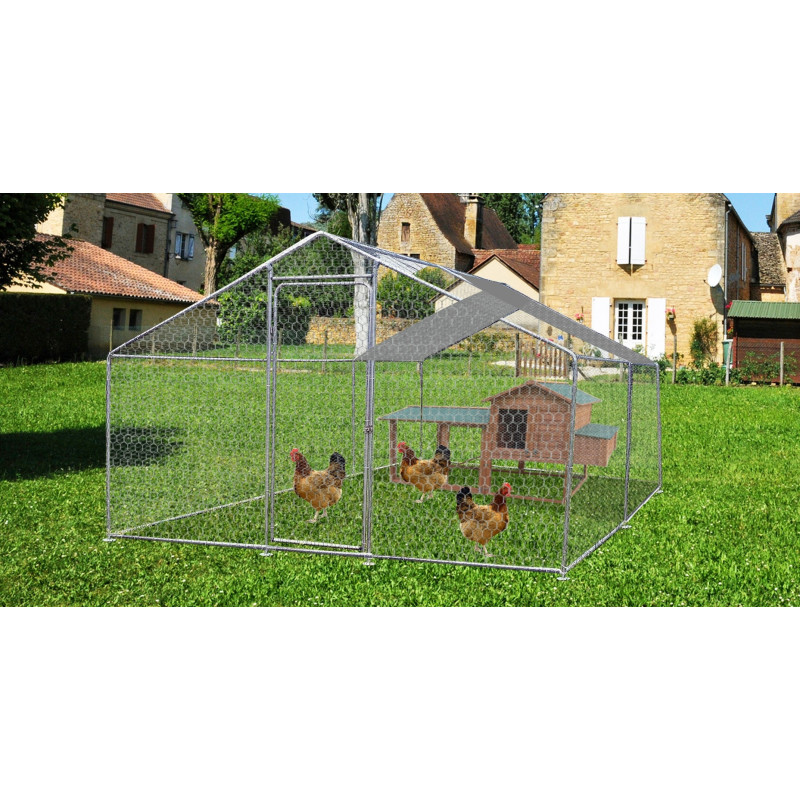 Dimensioni esterne: 175 x 348 x 204 cmSuperficie lorda: 6,09 m²Superficie coperta a terra: 5,18 m²Dimensioni al suolo: 160 x 324 cmAltezza colmo: 204 cmCapacità: 8–12 animaliMateriale: legno naturaleSpessore pareti: 16 mmColore: naturaleCopertura tetto: guaina ardesiata scuraGriglia: zincata, maglia 25 mmAccessori inclusi: voliera, zona notte, rampa,...