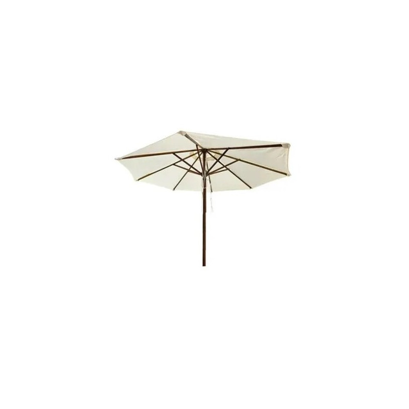 Palo legno tropicale Ø mm 48 2 sezioni <br />8 stecche legno mm 17x22 <br />Telo poliestere antistrappo g 235 mq colore ecru' <br />Cima antivento <br />Uso professionale <br />