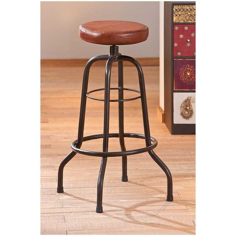 Sgabello struttura in metallo Etnico vintage Seduta in pelle Dim. 55x55x72h