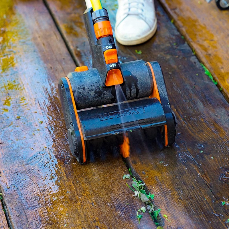 Studiato per la manutenzione accurata delle superfici esterne, questo lavapavimenti a batteria da 20 Volt permette di eliminare efficacemente sporco, residui organici e incrostazioni da pavimentazioni in pietra, cemento, legno e materiali compositi. Compatibile con la piattaforma PowerShare, funziona con batteria removibile e intercambiabile con tutti gli utensili Worx da 20 Volt. La versione WG441E.9 viene fornita senza batteria e senza caricabatterie, soluzione ideale per chi possiede già utensili della stessa gamma e desidera ottimizzare l’investimento. Il rullo rotante con doppia velocità regolabile, 700 o 900 giri al minuto, consente di modulare l’intensità di lavoro in base alla superficie trattata. La rotazione spinge lo sporco in avanti facilitando la raccolta, mentre il raccordo integrato per l’acqua contribuisce a migliorare la resa su sporco ostinato e giunti anneriti. Il sistema di sostituzione rapida del rullo permette di alternare facilmente la spazzola a setole morbide, adatta a superfici delicate come legno ed erba sintetica, alla spazzola a setole dure con inserti metallici specifica per la pulizia delle fughe. Con un peso di soli 3,7 chilogrammi, assicura leggerezza e controllo durante l’utilizzo. Perfetto per terrazze, camminamenti, cortili e aree esterne soggette a sporco frequente, offre una soluzione pratica e maneggevole per la pulizia periodica degli spazi outdoor.