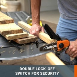 Modello: WG324E.9Alimentazione: Batteria ricaricabile 20 Volt (non inclusa)Compatibilità: Sistema Worx PowerShare 20 VoltLunghezza barra: 12 centimetriVelocità catena: 3,7 metri al secondoVelocità a vuoto: 3780 giri al minutoPasso catena: 1/4 di polliceCalibro catena: 0,043 pollici (1,1 millimetri)Peso macchina: 1,75 chilogrammiSicurezza: Protezione lama...